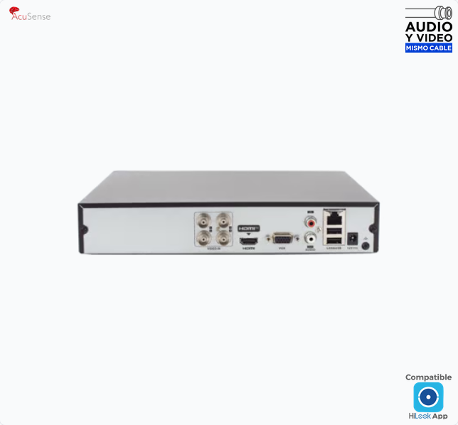 DVR 4 Canales TurboHD + 1 Canal IP / 2 Megapíxel (1080p) Lite / Acusense Lite (Evita Falsas Alarmas) / Audio por Coaxitron / 1 Bahía de Disco Duro / H.265+ / Salida de Vídeo Full HD