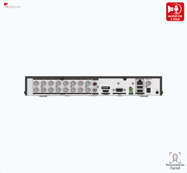 DVR 16 Canales TURBOHD + 8 Canales IP / 5 Megapixel Lite - 3K Lite / Audio Bidireccional por Coaxitron / Reconocimiento Facial / ACUSENSE (Evita falsas alarmas) / 1 Bahía de Disco Duro / Salida de Video en Full HD